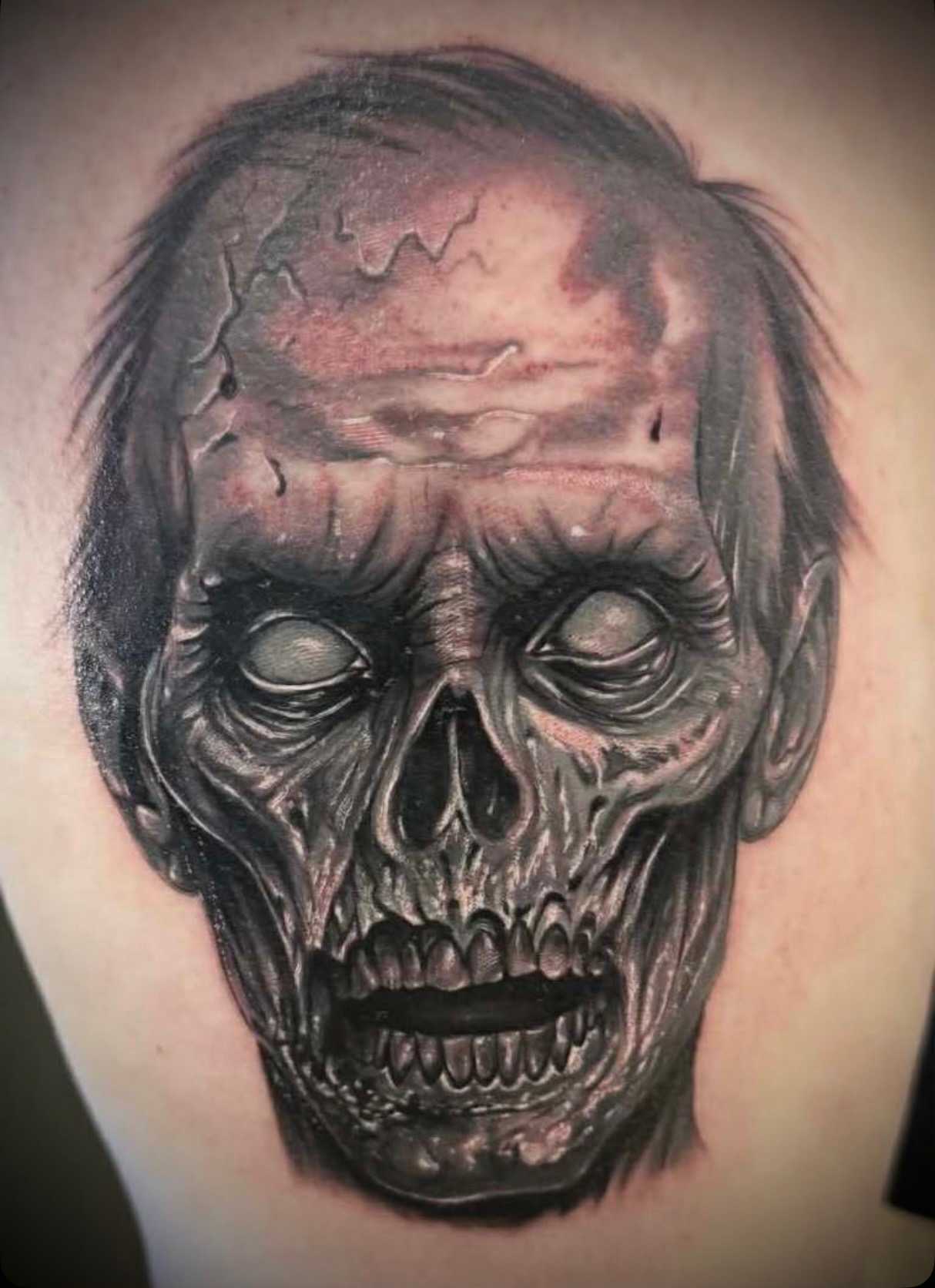 Jake Shafer is a professional tattoo artist with six years of experience, specializing in black and gray realism infused with a dark, atmospheric edge. His work leans into moody contrasts, eerie subject matter, and refined detail, creating tattoos that feel both haunting and intentional.