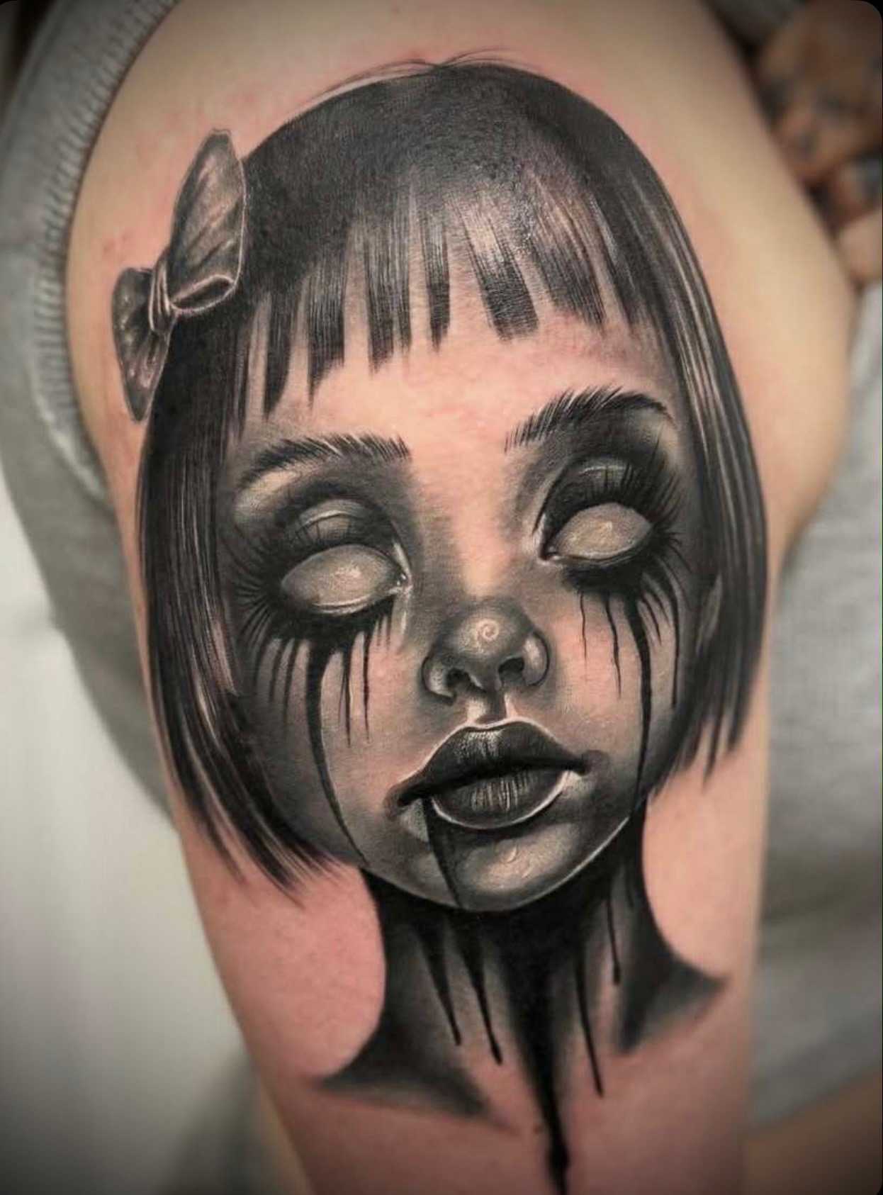 Jake Shafer is a professional tattoo artist with six years of experience, specializing in black and gray realism infused with a dark, atmospheric edge. His work leans into moody contrasts, eerie subject matter, and refined detail, creating tattoos that feel both haunting and intentional.